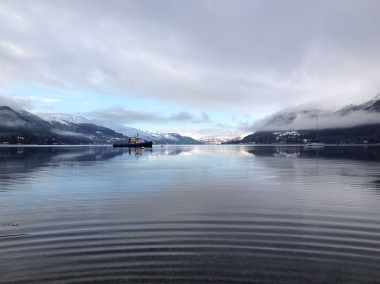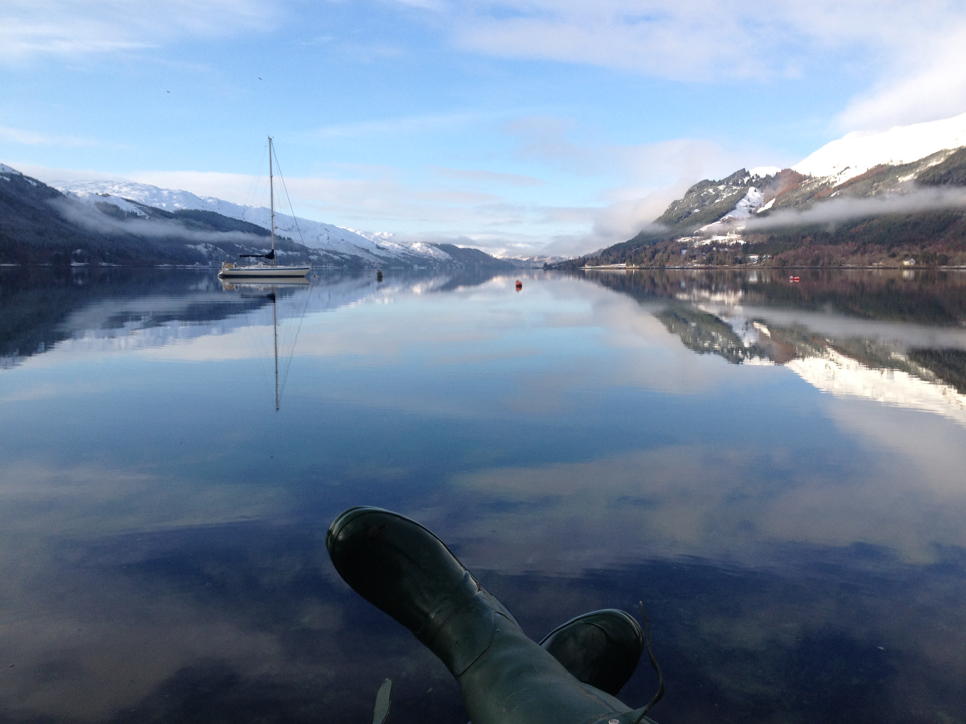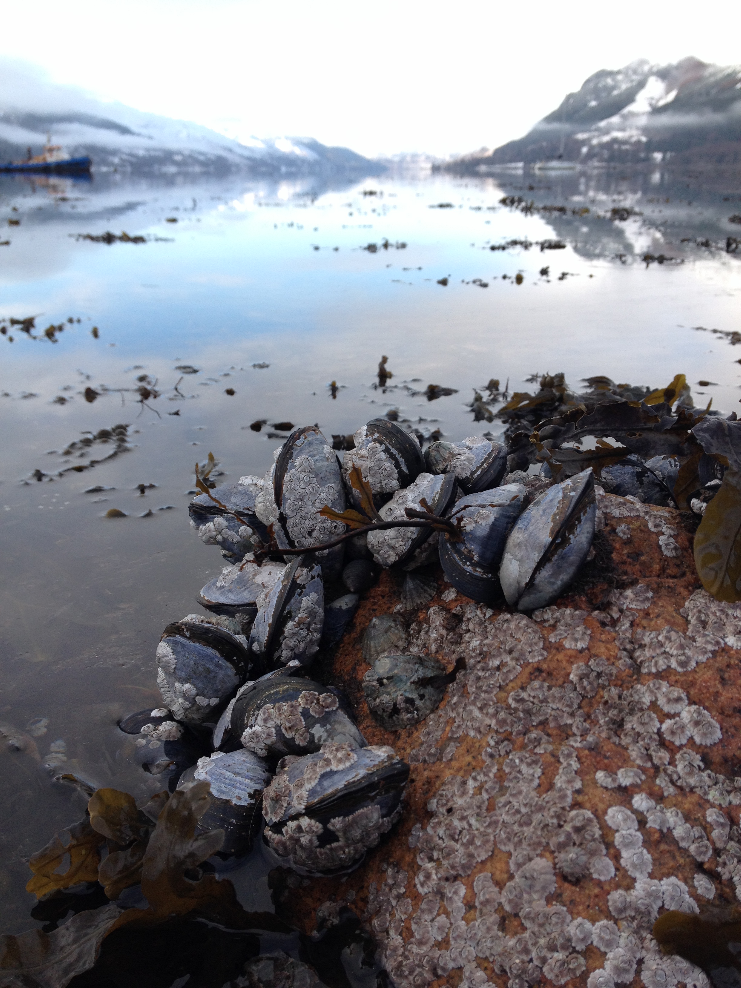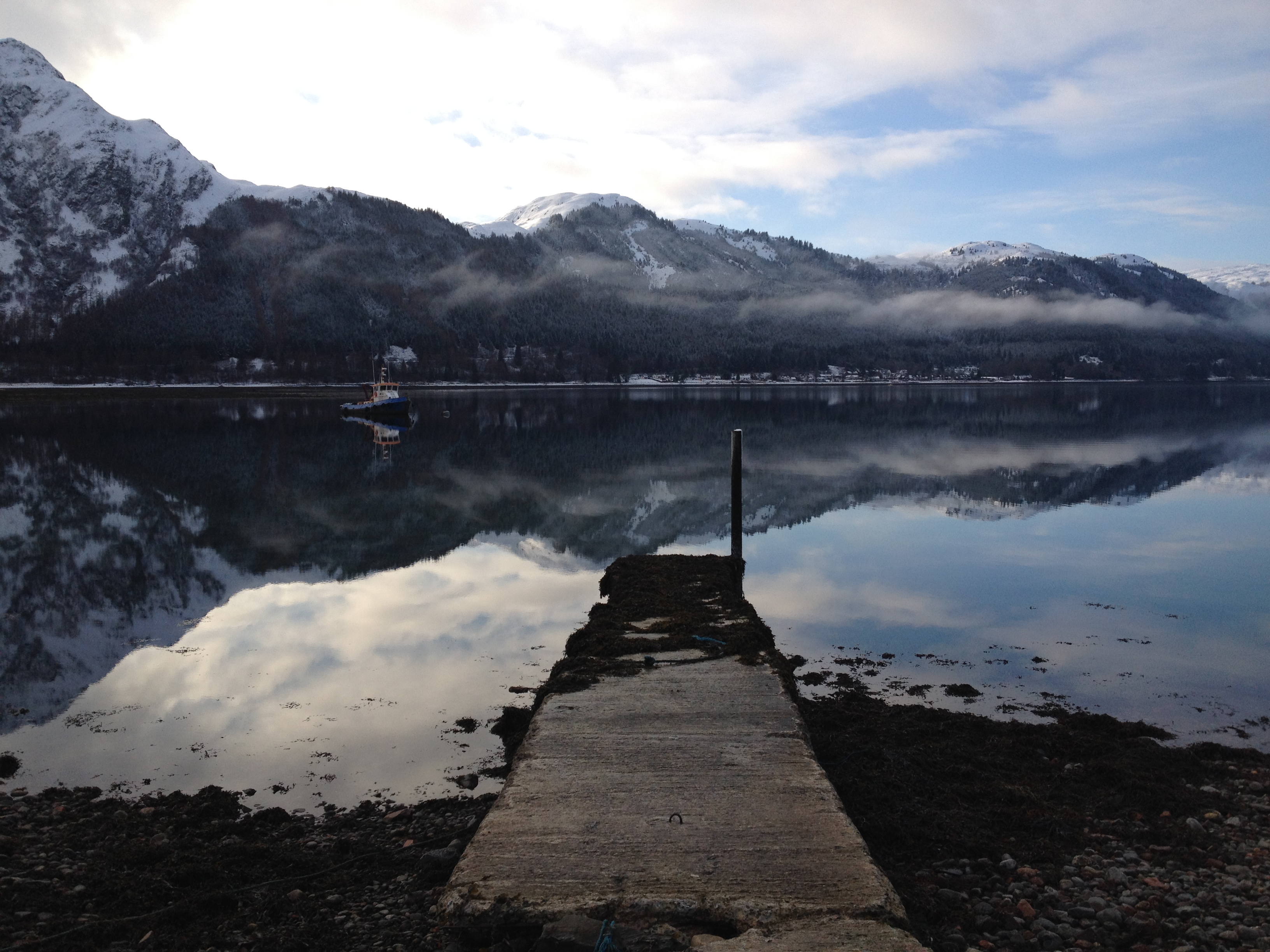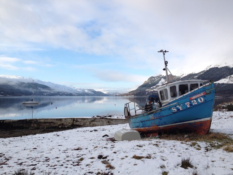 I parked up outside Kintail Lodge (closed for winter) and picked my way along the rocky shore. The water was so still that I could see every fragment of shell and frond of seaweed under the water. The only ripples on the surface were made by me and my boots.