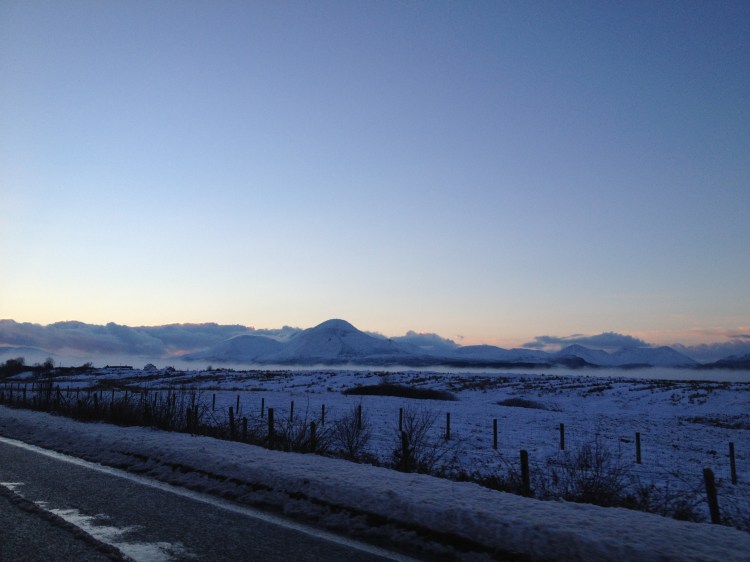 Back on the road I was soon distracted from my melancholy by the scenery. It was a landscape that doesn’t seem to suit the UK and round each corner it was slightly different. On one side it looked like the Swiss Alps, on the other it looked like Lapland as imagined in Elf.